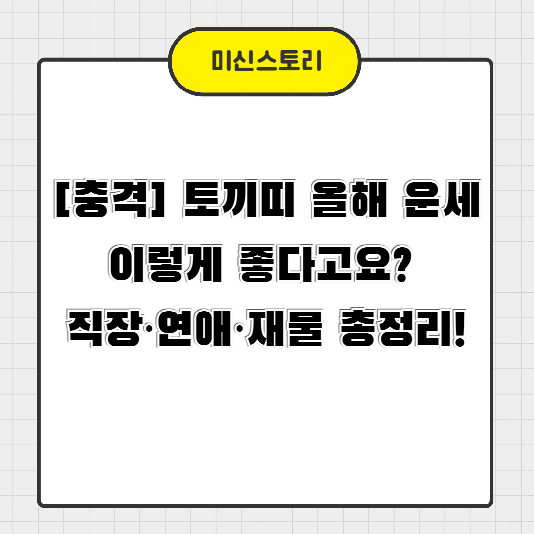 2025년은 을사년(乙巳年), 즉 푸른 뱀의 해입니다. 이런 해에 토끼띠에게는 어떤 운세가 기다리고 있을까요? 오늘은 2025년 토끼띠 운세에 대해 자세히 분석해 드릴게요. 연애운부터 재물운, 직장운, 건강운까지 모두 확인해보세요!